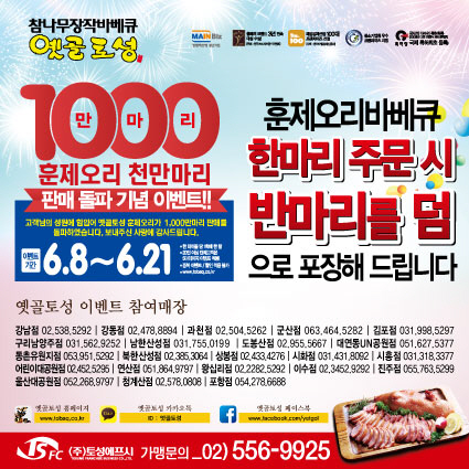 이현히 옛골토성 과천점 대표는 "10년 넘게 너무나 많은 사랑을 받으며 오리훈제 바비큐 판매수가 벌써 1000만마리를 돌파해 이에 보답하고자 이번 이벤트를 열게 됐다"고 말했다. 제공되는 가정용 오리훈제에는 집에서 간편하게 조리할 수 있는 레시피도 함께 들어 있다.