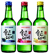 좋은데이블루, 레드, 옐로우는 소주에 블루베리, 석류, 유자를 섞은 리큐르 상품이다.