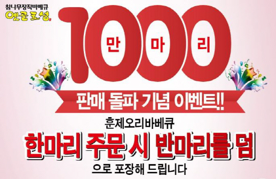 옛골토성이 지난 8일부터 21일까지 진행중인 훈제오리 1000만마리 판매돌파 기념 이벤트를 31일까지 연장한다.