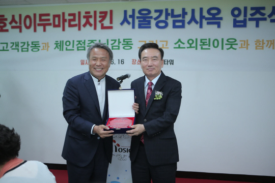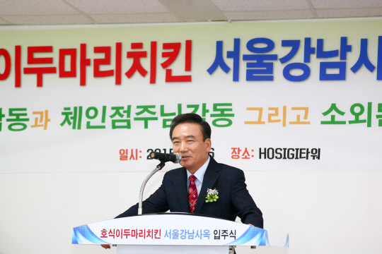 한편 호식이두마리치킨은 지난 16일 강남 논현동에 위치한 HOSIGI타워 입주식을 성공적으로 치렀다. 이날 입주식에는 3개 사업본부와 8개 지역본부의 임직원뿐만 아니라 공동마케팅을 협약한 ㈜하림 외 그간 상생하며 함께한 수많은 협력업체들이 참석했다. 그동안 최 회장이 줄곧 주장해온 '상생경영'의 결실을 엿볼 수 있었다.