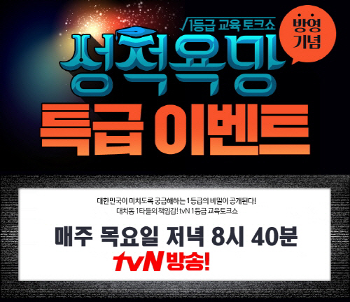스카이에듀 tvN 1등급 교육토크쇼 '성적욕망' 방영 이벤트