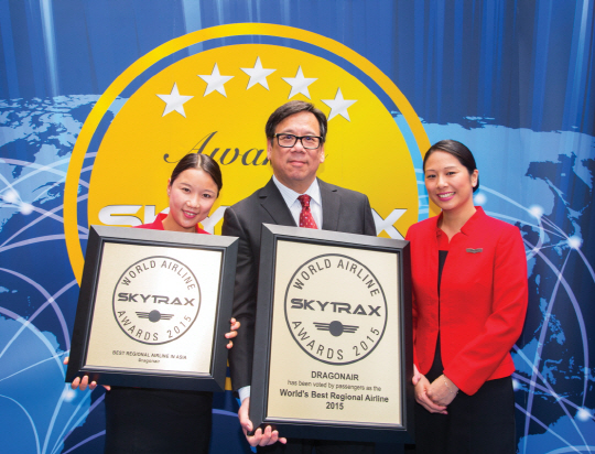 알저넌 야우 드래곤에어CEO 는 16일(현지시간) 프랑스 파리에서 열린 2015 스카이트랙스 세계항공대상 시상식에 참석해 "전 세계의 탑승객으로부터 큰 인정을 받게 돼 매우 영광이다. 드래곤에어의 모든 임직원을 대신해 감사의 말을 전한다" 며 "30년간 우리의 거점이 되어온 홍콩을 널리 알리는 뜻 깊은 상을 수상해 매우 자랑스럽다"고 말했다. 그는 또 "세계 최고의 지역 항공사로써 앞으로도 홍콩이 글로벌 허브공항의 위상을 강화하는 데 큰 역할을 할 것"이라고 강조했다.