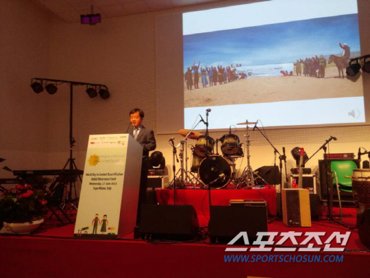 오기출 푸른아시아 상임이사가 지난 17일 오전 11시(현지시각) 이탈리아 밀라노에서 열리고 있는 '2005 밀란 엑스포'에서 유엔사막화방지의 날을 맞아 유엔사막화방지협약(UNCCD)가 수여하는 '생명의 토지상' 최우수상(The First Prize of Land for Life Award)을 받았다.