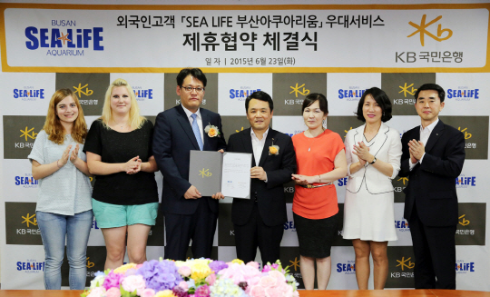 KB국민은행(은행장 윤종규/www.kbstar.com)은 23일 오후 SEA LIFE 부산아쿠아리움과 외국인 고객에 대한 차별화된 맞춤 우대서비스 제공을 위해 제휴 협약을 체결했다.