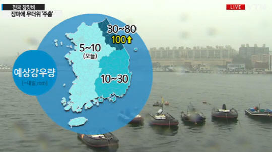 금요일인 26일 장마전선 영향으로 전국 곳곳에 비가 내리고 있다.