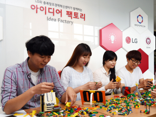 LG는 또 대학생들의 자유로운 아이디어 제안 및 발전 환경을 마련해주기 위해 충북대 경영대학의 '아이디어 팩토리(Idea Factory)' 개설을 지원했다. 아이디어 팩토리는 시제품 모형제작을 위한 3D 프린터, 레고 블록, 아이소핑크(핑크색 압축 스티로폼) 실습 도구 등이 비치돼 대학생들의 아이디어를 시각화해 발전시킬 수 있는 창의적인 공간으로 활용될 예정이다.