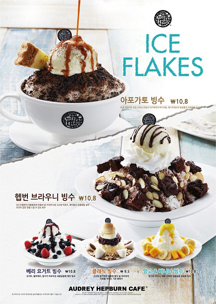 다른 커피 브랜드는 세기의 아이콘 영화배우 오드리헵번의 향기가 물씬 풍기는 카페 프랜차이즈 '오드리헵번 카페'다. 세계 3대 스페셜 빈으로 꼽히는 커피 '크리스탈 마운틴'과 오드리헵번이 생전에 자녀들에게 브라우니를 만들 때 사용한 조리법으로 개발한 '헵번 브라우니' 등 프리미엄 메뉴를 내세워 커피전문점 창업시장에서 두각을 보이고 있다. 올 여름을 겨냥해 출시한 헵번 브라우니 빙수와 클래식 빙수, 망고&바나나 빙수의 업그레이드 버전, 신메뉴인 아포가토 빙수와 베리 요거트 빙수 등이 큰 인기를 얻고 있다