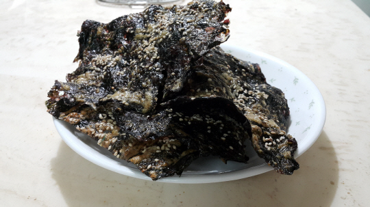 김 처럼 얇은 재료도 바삭바삭하게 튀겨졌다.