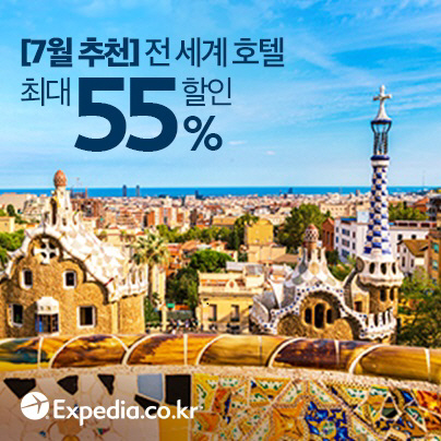 익스피디아(www.expedia.co.kr)가 1일 국내를 비롯 미국, 호주, 유럽, 태국 등 전 세계 인기 지역 591개 호텔 가격을 최대 55%까지 할인하는 '전세계 호텔 할인전'을 진행한다고 밝혔다.