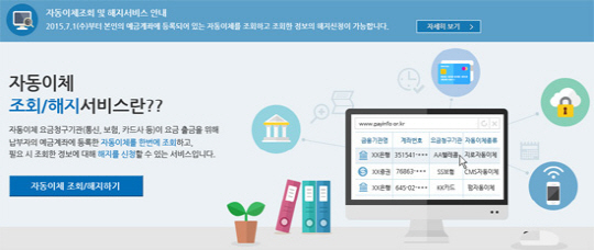 금융권 자동납부 연결계좌를 한눈에 조회하고 해지 가능한 서비스가 시작됐다.