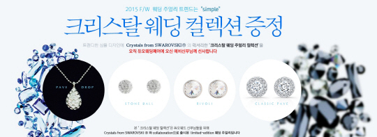 예비부부를 위한 특별 이벤트도 마련했다. 듀오웨드와 Crystals from Swarovski®가 콜라보레이션으로 제작한 한정판 크리스탈 웨딩주얼리 컬렉션을 무료로 증정한다. 선착순 1000 커플에게 목걸이와 귀걸이 등 트렌디하고 심플한 디자인의 주얼리 4종 중 1종을 선물할 계획이다. 현장에서 추가 구매도 가능하다.