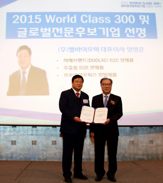 한편, 'WC 300'에는 2011년 첫 사업이 시작되었으며, 올해 30개 기업이 'WC 300'에 추가로 이름을 올렸다. 쎌바이오텍은 지난달 특허청 특허기술상 '충무공상'과 한국미생물생명공학회 '기술상'을 연달아 수상한 데 이어 'WC 300'에도 선정됨으로써 기업 역량과 기술의 우수성을 대내외적으로 널리 알리고 있다.