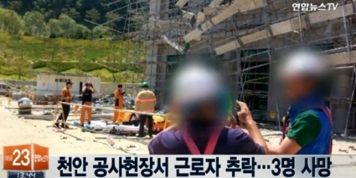 충남 천안의 한 공사현장에서 근로자 추락사고가 발생, 근로자 3명이 숨지고 4명이 부상을 입었다.