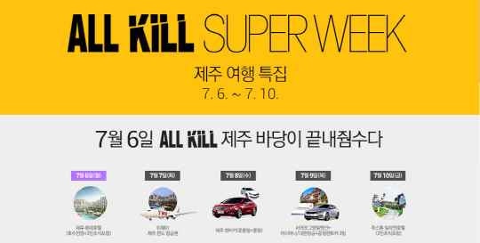 온라인마켓플레이스 옥션(www.auction.co.kr)은 여름 휴가철을 앞두고 6일부터 10일까지 국내 대표 여행지인 제주도의 항공권과 숙박, 렌터카 등의 상품을 최대 53% 할인 판매하는 '올킬 슈퍼위크-제주여행' 기획전을 연다.