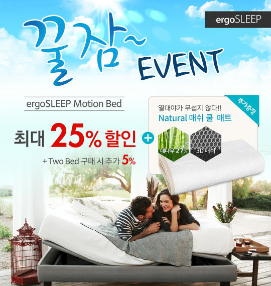 모션침대 전문 브랜드 '에르고슬립(ergosleep)'이 본격적인 여름을 맞아 7월 한 달간 '꿀잠 이벤트'를 실시한다.