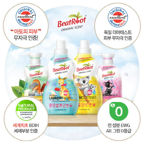 비트루트는 독일 피부과학연구소 더마테스트(dermatest)에서 피부 무자극 테스트를 받은 제품이다. 호주에서 만들어지며 독일 더마테스트에서 아토피 피부 무자극 최고등급(Excellent)을 획득했다. 더마테스트는 인체 피부에 테스트하는 방식으로 소비자들이 더욱 신뢰할 수 있는 테스트로 알려져 있어 엄마들이 안심하고 사용할 수 있는 유아세제로 자리매김 하고 있다.