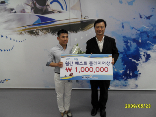 국민체육진흥공단(이사장 이창섭) 경륜경정사업본부는 지난 2일 경기도 미사리 경정장 선수동에서 월간 베스트 플레이어 선정 행사를 열었다. 이현근 경정운영단장은 류해광에게 베스트 플레이어 트로피와 상금 100만원을 전달했다.