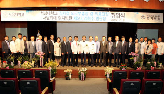 서남대학교(총장 김경안)와 명지의료재단(이사장 이왕준)은 지난 8일 오후 2시 경기도 고양시 서남의대 명지병원에서 김세철 서남대학교 의무부총장 겸 의료원장 및 김형수 제5대 명지병원장 취임식을 갖고 서남대학교 정상화 및 의료 혁신을 다시 한번 다짐했다.