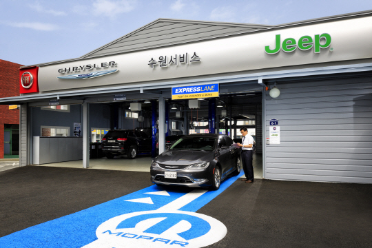 FCA 수원 서비스 센터 익스프레스-레인 서비스에는 전담 워크베이 1기와 전문 트레이닝을 이수한 서비스 어드바이저 및 테크니션이 배치되어 피아트, 크라이슬러, 지프 차량에 대해 신속한 고객 서비스를 제공하게 된다. 일일 최대 15대까지 서비스가 가능하며, 운영시간은 월~토 오전 9시~오후 6시다.
