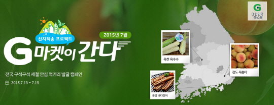 국내 최대 온라인쇼핑사이트 G마켓(www.gmarket.co.kr)이 19일까지 산지직송 프로모션 'G마켓이 간다' 여름 시즌편을 진행한다. 바다장어, 옥수수, 복숭아, 단호박 등 다양한 제철 식품과 지역 특산물을 할인 판매하고 유명 셰프가 함께하는 레시피 영상도 소개한다.