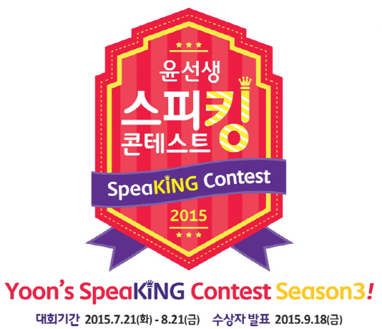 영어교육 전문기업 윤선생(www.yoons.com)이 여름방학 기간 동안 '윤선생 스피킹(SpeaKING) 콘테스트 2015'를 진행한다.