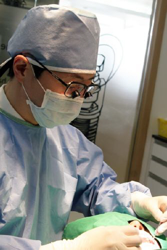 수술정밀유도장치를 환자의 구강에 장착 후 계획된 위치에 빠르게 임플란트를 식립한 후 인공치아를 올리는 것으로 환자의 뼈 상태가 좋은 경우라면 1시간 이내에 임플란트 시술을 마칠 수 있다는 것이 김 원장의 설명.