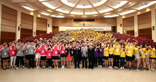 KB국민은행(은행장 윤종규/www.kbstar.com)은 15일 천안연수원 대강당에서 4개 대학생 봉사단 375명이 참석한 가운데 KB국민은행 대학생 봉사단 '희망청년' 발대식을 개최하였다.