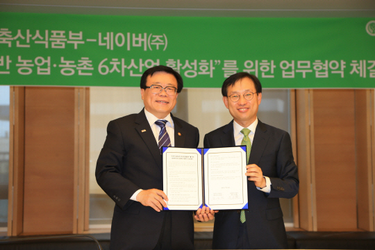 네이버(대표이사 김상헌)가 16일 농림축산식품부(장관 이동필, 이하 농식품부)와 농업 및 농촌관광을 포함한 6차산업 활성화를 위해 포괄적 업무협약을 체결했다고 밝혔다. 협약식을 통해 양 기관은 생산업, 제조업, 서비스업이 융합해 새로운 가치를 생산해내는 고부가가치 산업인 6차산업을 발전시킬 수 있는 성장 발판을 마련하는데 힘을 모으기로 했다.
