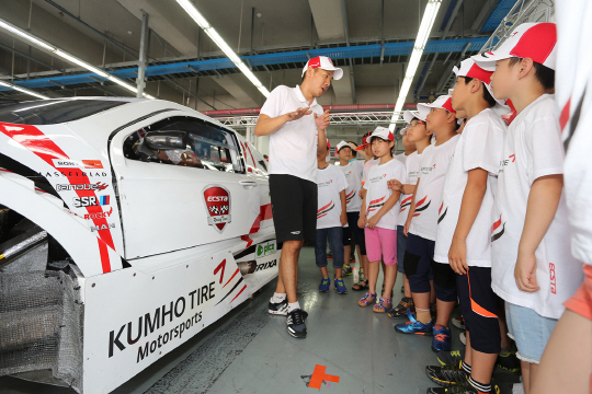 금호타이어(대표 김창규)가 19일 영암 인터내셔널 서킷에서 전남 곡성군 입면초등학교 학생들을 대상으로 모터스포츠 관련 교육 및 경기장 체험 등의 교육기부 활동을 실시했다.