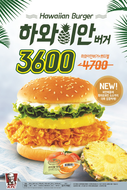 KFC, 여름철 겨냥 '하와이안 버거' 선보여