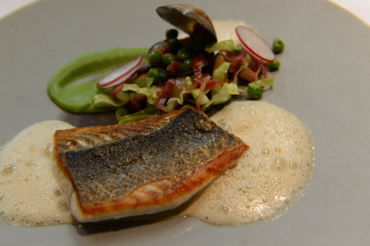 여름이 제철로 살이 오른 대표 생선 농어와 프랑스식 완두콩 요리