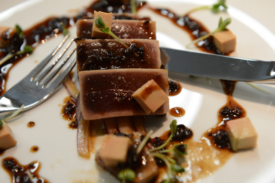 따뜻한 엉트레는 자몽 비네그렛에 버무린 구운 야채에 염소 치즈 크림, 블루베리, 로즈마리 미가스가 곁들여져 치즈의 부드러움과 블루베리의 상큼함, 향긋한 로즈마리 향을 동시에 느낄 수 있다. 또 다양한 색감과 다양한 식감들이 어우러져 훨씬 풍성한 미각을 전하는 메뉴이다.