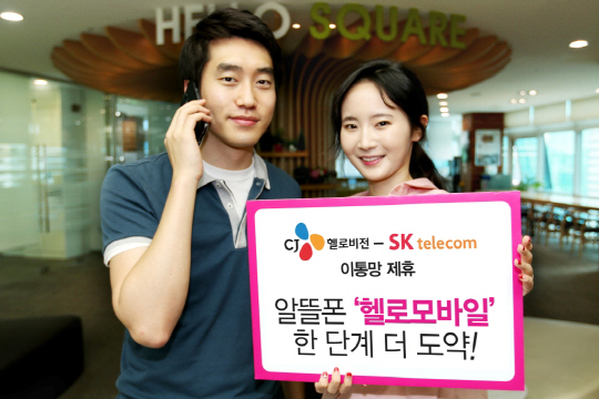 CJ헬로비전이 KT에 이어 SK텔레콤과 이동통신망 도매 제휴를 맺고 알뜰폰(MVNO) 사업을 확대한다. CJ헬로비전 알뜰폰 브랜드 '헬로모바일'에 가입하려는 고객은 선택권이 늘어나 SK텔레콤과 KT 중 곳을 고를 수 있게 됐다.