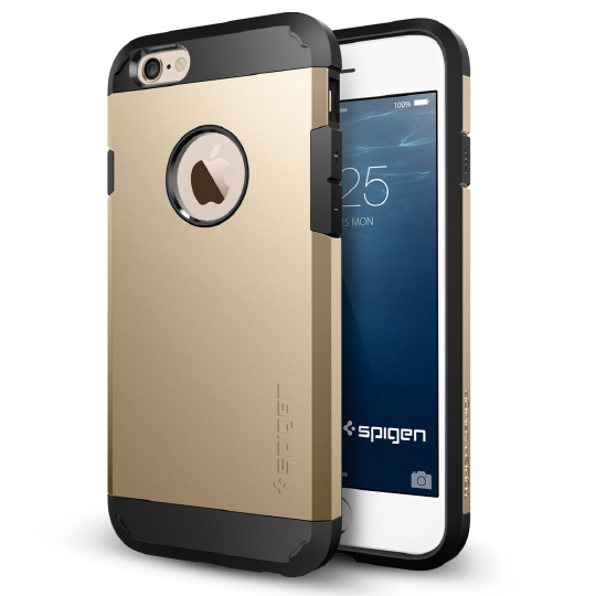 슈피겐의 '터프아머'는 강력한 보호력을 특징이로 하고 있다. 케이스를 부드러운 TPU소재에 하드커버를 덧씌운 듀얼레이어 구조로 설계했고 특허기술인 '에어쿠션'을 모서리 4곳에 적용해 완충효과를 높였다. , 내부는 '스파이더웹' 패턴으로 디자인해 충격을 더욱 유연하게 흡수한다. 슈피겐은 아이폰은 물론 갤럭시 및 아이패드 등 다양한 '터프아머' 라인업을 보유하고 있다.