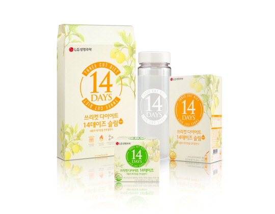 LG생명과학 '쓰리컷 다이어트 14데이즈'는 탄수화물의 지방 합성억제 및 식욕컨트롤, 지방산화촉진, 원활한 배변활동을 도와 나이 들수록 빼기 힘든 나잇살을 컨트롤 할 수 있도록 설계된 다이어트 제품이다. LG생명과학은 이번 홈앤쇼핑 특별 방송에서 '쓰리컷 다이어트 14데이즈' 4세트(8주분)와 물에 타서 간편하게 섭취할 수 있도록 '마이보틀'을 함께 구성해 방송 사상 최저가인 132,200원에 판매한다.