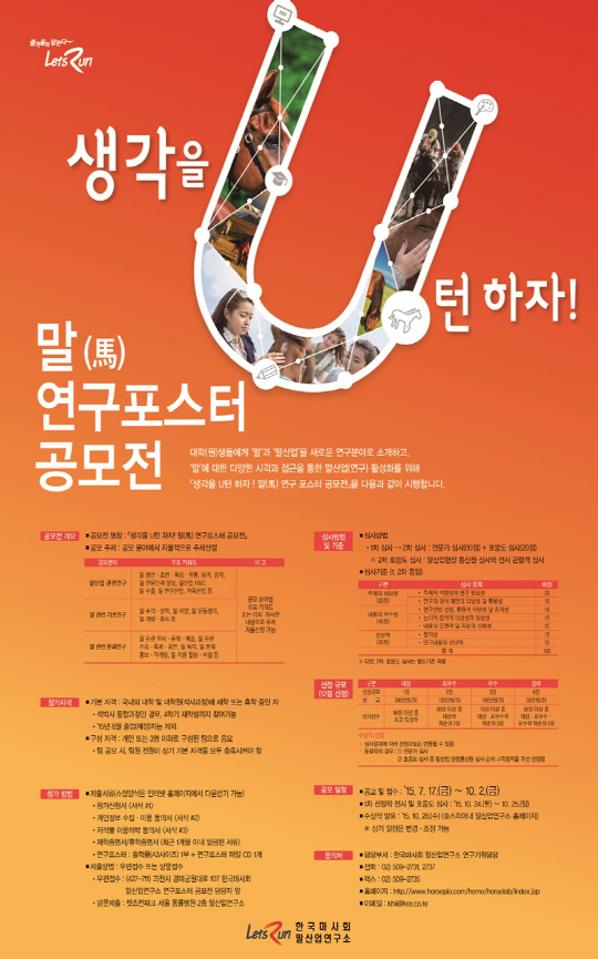 한국마사회(회장 현명관)가 대학생과 대학원생을 대상으로 '말(馬) 연구포스터 공모전'을 실시한다.