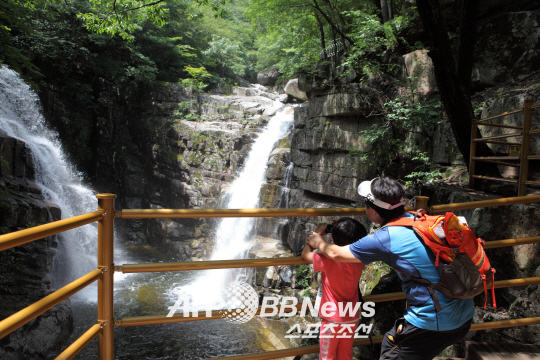 ◇여름 무더위에는 물(水)이 최고다. 그중 시원스레 떨어지는 폭포 물줄기는 바라보는 것만으로도 더위를 싹 가시게 한다. 사진은 충남 금산의 십이폭포.