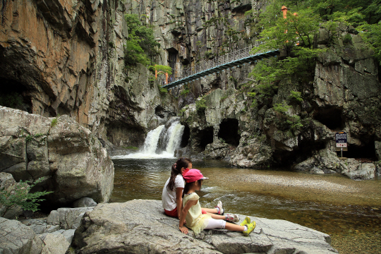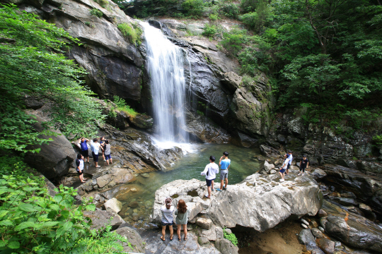7월말~8월초, 여름휴가가 피크를 맞는 때다. 하지만 어디를 가도 인산인해. 그나마 여름 무더위에는 물(水)이 최고다. 그중 시원스레 떨어지는 폭포 물줄기는 바라보는 것만으로도 더위를 싹 가시게 한다. 폭포는 주로 깊은 숲과 계곡을 지니고, 그 끝을 따라가자면 큰 강, 바다와 이어져 피서지로도 제격이다. 마침 본격 휴가철을 맞아 한국관광공사는 8월에 가볼 만한 곳으로 '시원한 폭포여행' 명소를 추천했다. 동해 무릉계곡 쌍폭(강원 동해), 가평 무주채폭포(경기 가평), 양산 홍룡폭포(경남 양산), 포항 내연산 12폭포(경북 포항), 구례 수락폭포(전남 구례), 부안 직소폭포(전북 부안), 금산 12폭포(충남 금산), 괴산 수옥폭포와 용추폭포(충북 괴산) 등 8곳이다. 김형우 문화관광전문 기자 hwkim@sportschosun.com