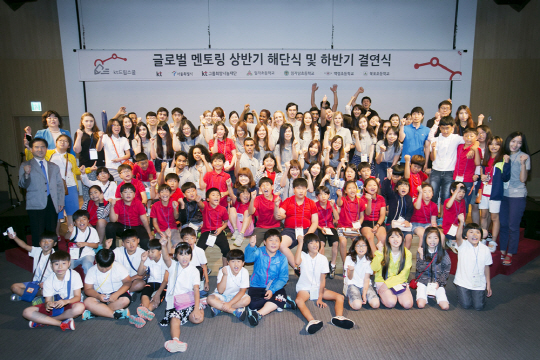 KT(회장 황창규)가 27일 기가 인프라로 주민들의 삶을 변화시키는 기가아일랜드 프로젝트 대상지인 전남 신안군 임자도와 인천 옹진군 백령도의 초등학생들을 24일부터 26일까지 2박 3일간 서울로 초청해 서울시 외국인 유학생 봉사단과의 멘토링 행사를 개최했다고 밝혔다.