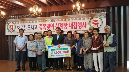 국민체육진흥공단(이사장 이창섭) 경륜경정사업본부 관악스피존이 지난 21일 관악구 서원동 메모리스 클래식 웨딩홀에서 경로당 어르신과 기초수급자 노인 등 250명을 초청해 '중복맞이 삼계탕 대접 행사'를 열었다. 관악스피존은 저소득 노인 20명에게 온누리 상품권 200만원도 함께 전달하는 등 온정을 나눴다. 최상림 관악스피돈 지점장은 "앞으로 소외된 이웃에게 늘 관심을 갖고 작은 것이라도 함께 나누는 따뜻한 공공기관으로 인식될 수 있도록 노력해 나갈 것"이라고 전했다.