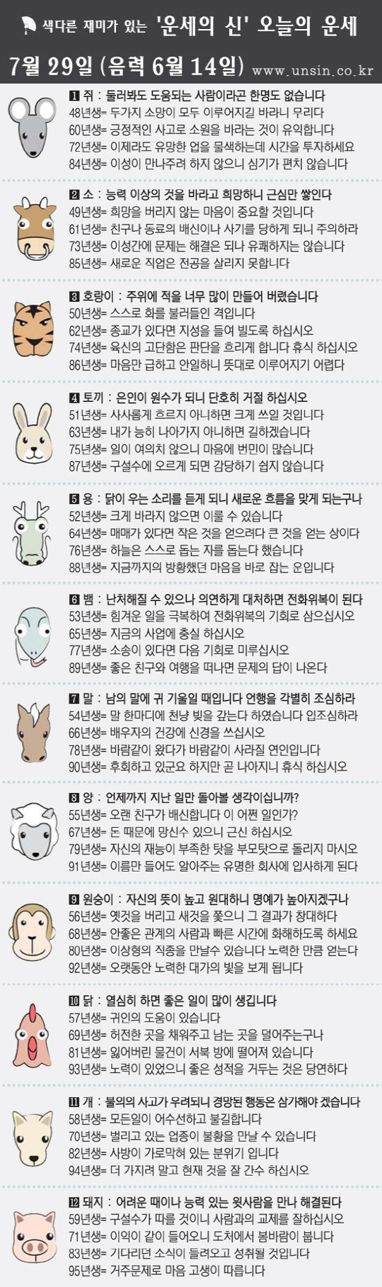 [직장인을 위한 오늘의 운세] 2015년 7월 29일 수요일(음력 6월 14일)