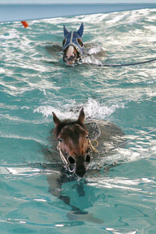 여름철 말들이 누리는 호사 중의 한 가지가 수영이다. 물속에서 체온도 낮추고 뭉친 근육을 풀어주면서 운동량을 늘릴 수 있어 여름철에는 '1석 3조'의 효과를 얻는다. 경기도 과천 렛츠런파크서울의 말 수영장은 수심 3m가 넘는다. 수영장 한바퀴를 돌면 1400m 경주로를 전력질주하는 만큼의 효과가 있다고 한다.