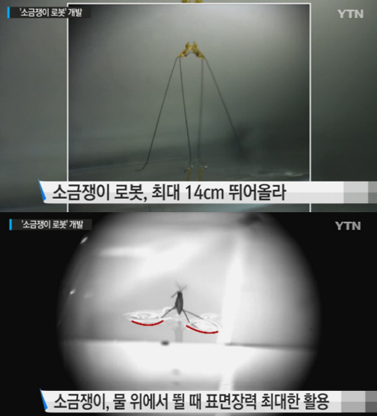 국내 한 연구진이 소금쟁이처럼 물 위에서 뛸 수 있는 로봇을 개발했다.