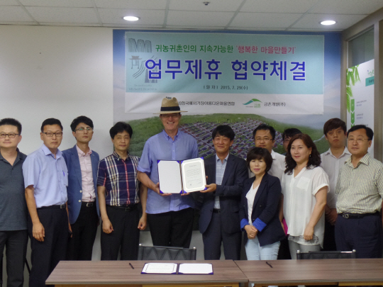 한국에서 가장 아름다운 마을연합과 금촌개발이 '귀농귀촌인의 지속가능한 행복한 마음 만들기' 업무협약을 체결했다.