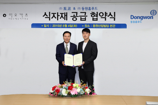 동원홈푸드(대표 신영수)가 4일 서초구 양재동 동원산업빌딩에서 일식 돈카츠 프랜차이즈 '25카츠(이오카츠)'를 운영하는 ㈜토코(대표 윤진호)와 식자재 공급에 관한 업무 협약을 체결했다.