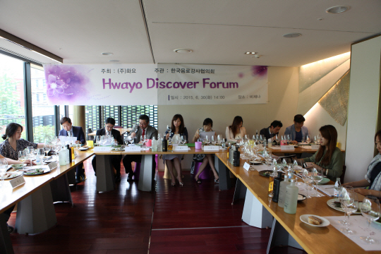 프리미엄 증류주 화요가 출시 11년을 기념해 국내 최고 권위의 소믈리에 8명(첨부)이 참가한 테이스팅 품평회 'HWAYO DISCOVER FORUM'을 개최했다.