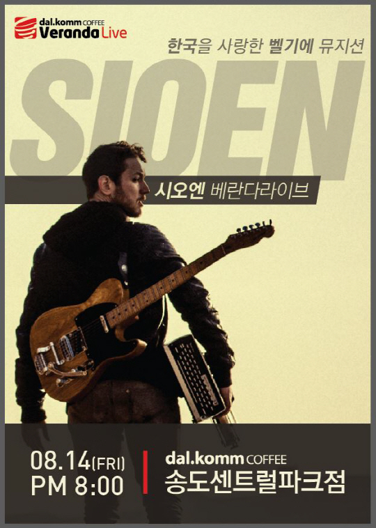 유럽내 골드 레코드를 기록하고 한국을 사랑하는 벨기에 뮤지션으로 유명한 '시오엔(Sioen)'이 달콤커피 베란다 라이브 무대를 선보인다.