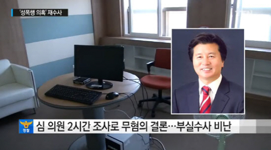 앞서 경찰은 지난 3일 극비리에 심 의원을 불러 2시간가량 조사한 뒤 범죄 혐의가 없는 것으로 결론 내렸다.