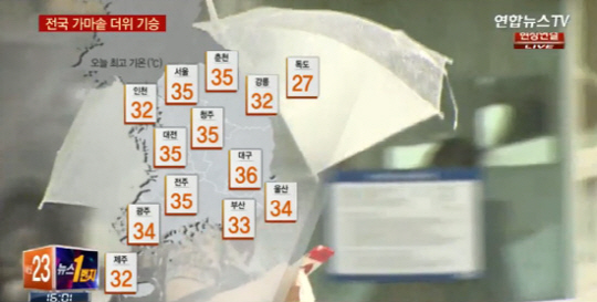 주말인 내일은 곳곳에 소나기가 내리는 가운데 찜통더위는 여전할 걸로 보인다. <스포츠조선닷컴>