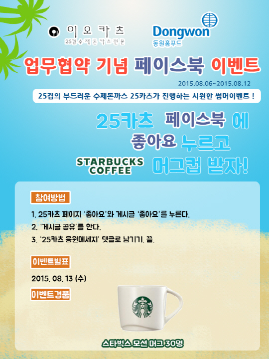 수제 돈까스 전문점 '25카츠'가 동원홈푸드와 식자재 공급에 대한 업무 협약 체결을 기념하는 페이스북 이벤트를 진행한다.